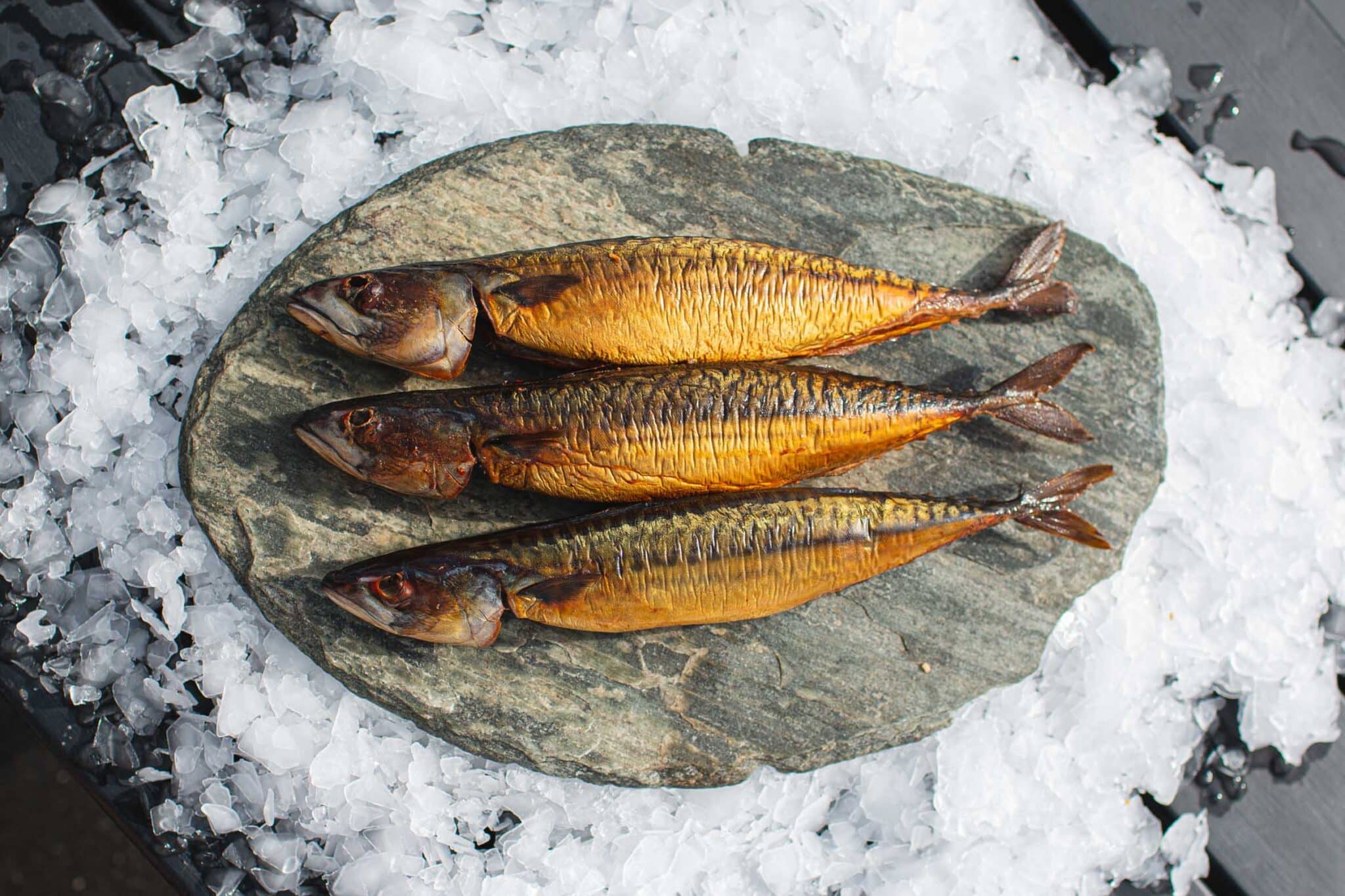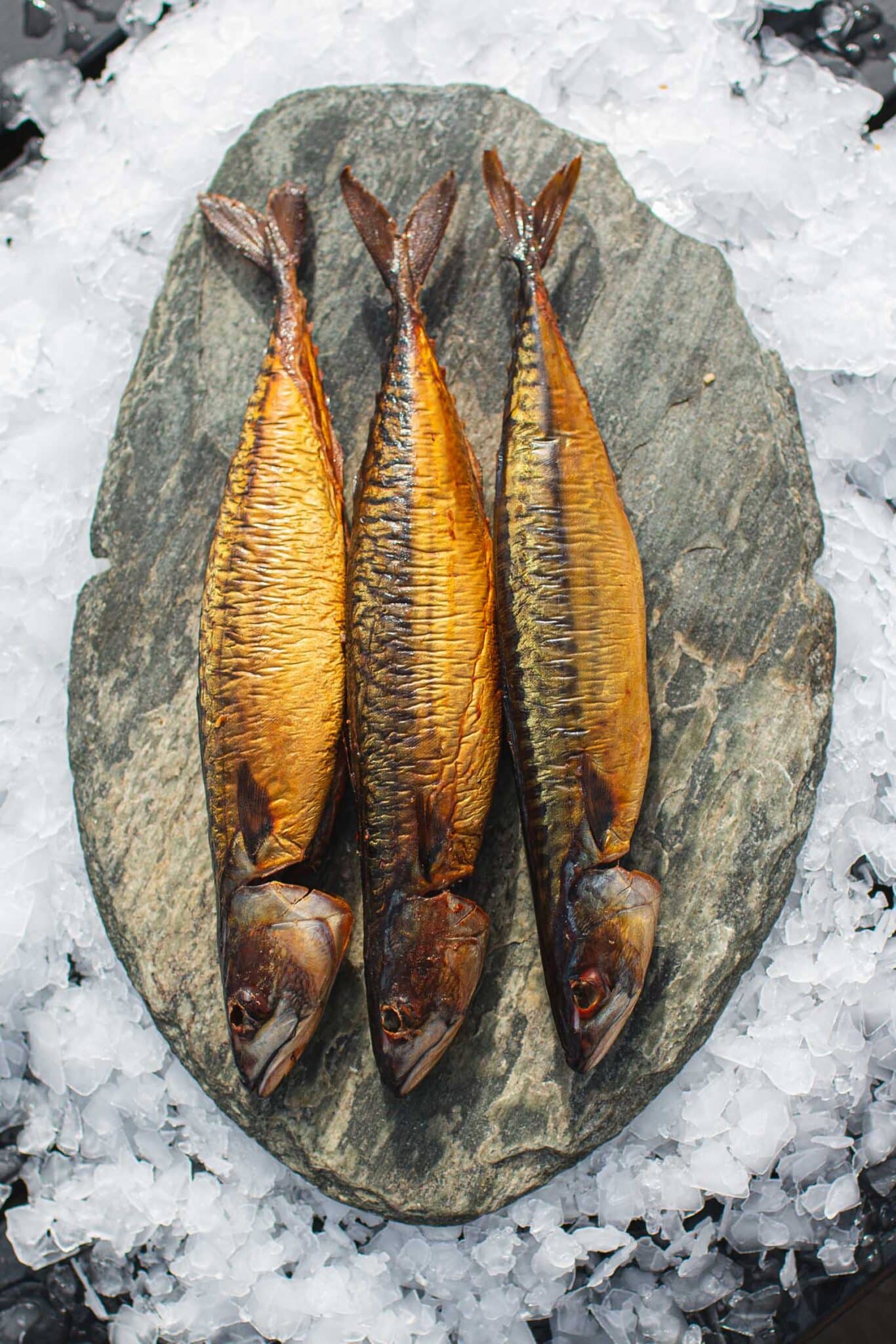 En hel, røget makrel er altid en lækkerbisken! Vores røgede makrel kommer direkte fra røgeriet, hvor røgeren har renset, saltet og tørret fisken, inden turen går i røgeovnen.